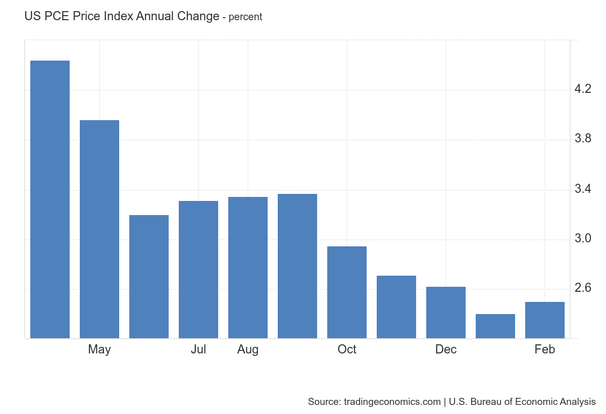 In February, PCE increased after a months-long downward trend. The day this report came out, the markets reacted, and mortgage rates shot up.